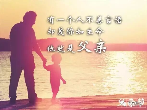 你人生的第一位“男神”,是誰? 他是最甜蜜的“男神” 他是第一個(gè)送棒棒糖給你的男人 你的甜蜜也甜蜜著他 他是最厲害的“男神” 小時(shí)候 覺得沒有什么東西是他修不好的 他是最難懂的“男神” 總不會(huì)當(dāng)面夸獎(jiǎng)你 但在心里你卻是他最大的驕傲 相比其他男神 他才是最愛你的MAN——父親 如果說母愛是一條溫柔的河, 那么另一種愛,深如海洋,凝重如山, 這就是父愛........ 當(dāng)你受委屈的時(shí)候 那個(gè)男人,把你護(hù)在臂彎里 當(dāng)你哭鼻子的時(shí)候 那個(gè)男人,掰著臉逗樂你 當(dāng)你開心的時(shí)候 那個(gè)男人,樂得花枝招展 父親節(jié),祝父親節(jié)日快樂 父親,記得少抽煙少喝酒 多多保重身體 祝您健康長(zhǎng)壽,幸福永遠(yuǎn)!